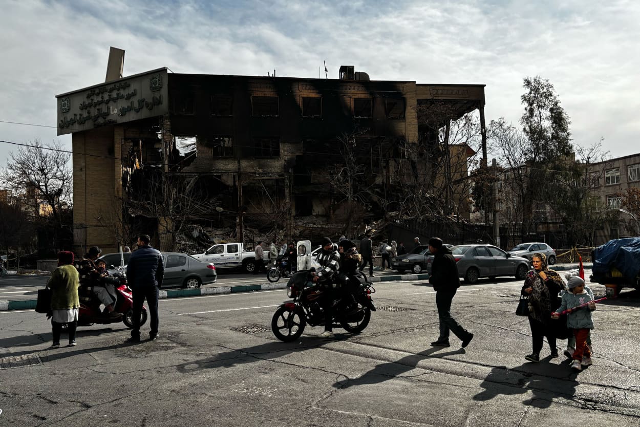 Damage to a local office building near Tehran today, following widespread protests in the Iranian capital. Amin Khodadai / NBC News
