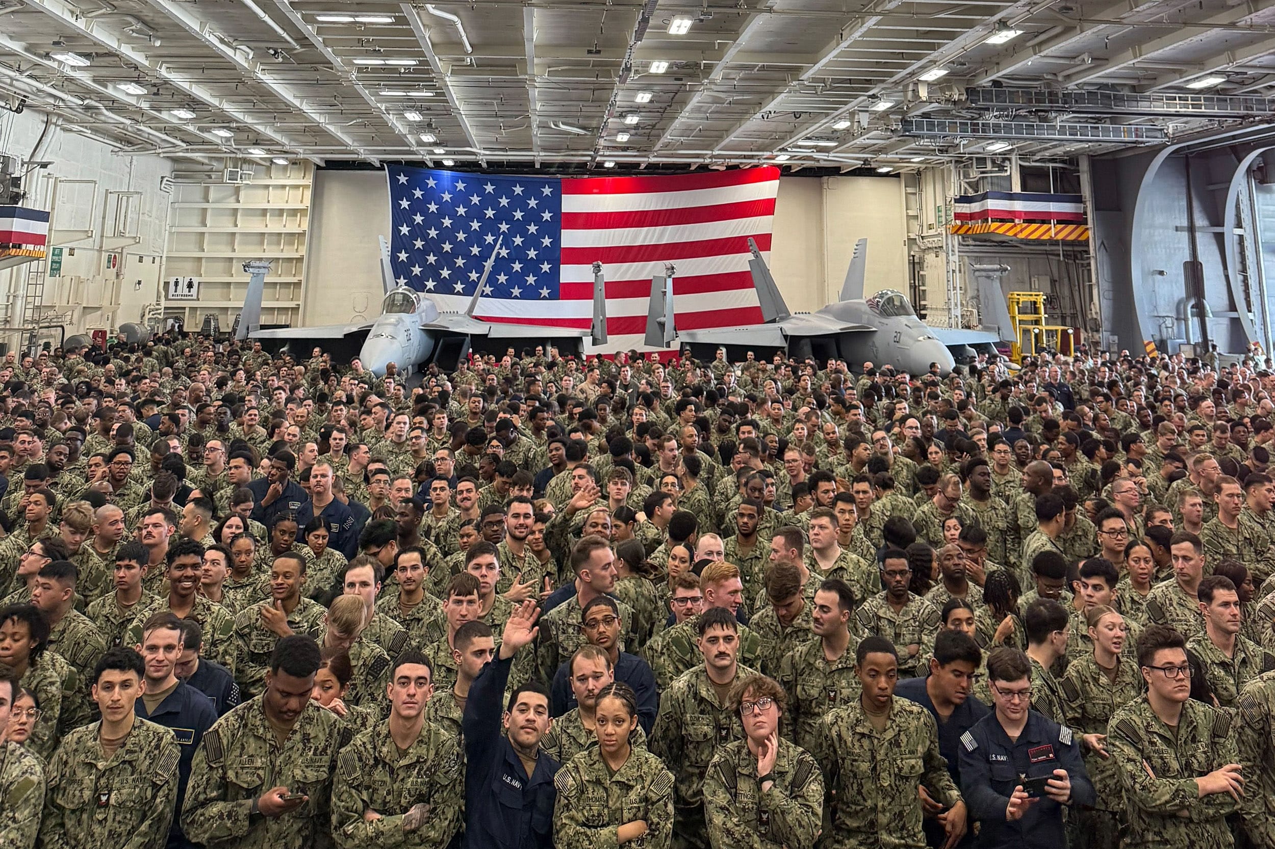 Trump opened his remarks by thanking the Navy amid chants of “Trump! Trump!” and “USA,” before recognizing Defense Secretary Pete Hegseth, calling him “a tough cookie,” and praising the strikes the U.S. military has conducted in recent weeks on boats in Caribbean and Pacific waters that the U.S. says are carrying drugs.
