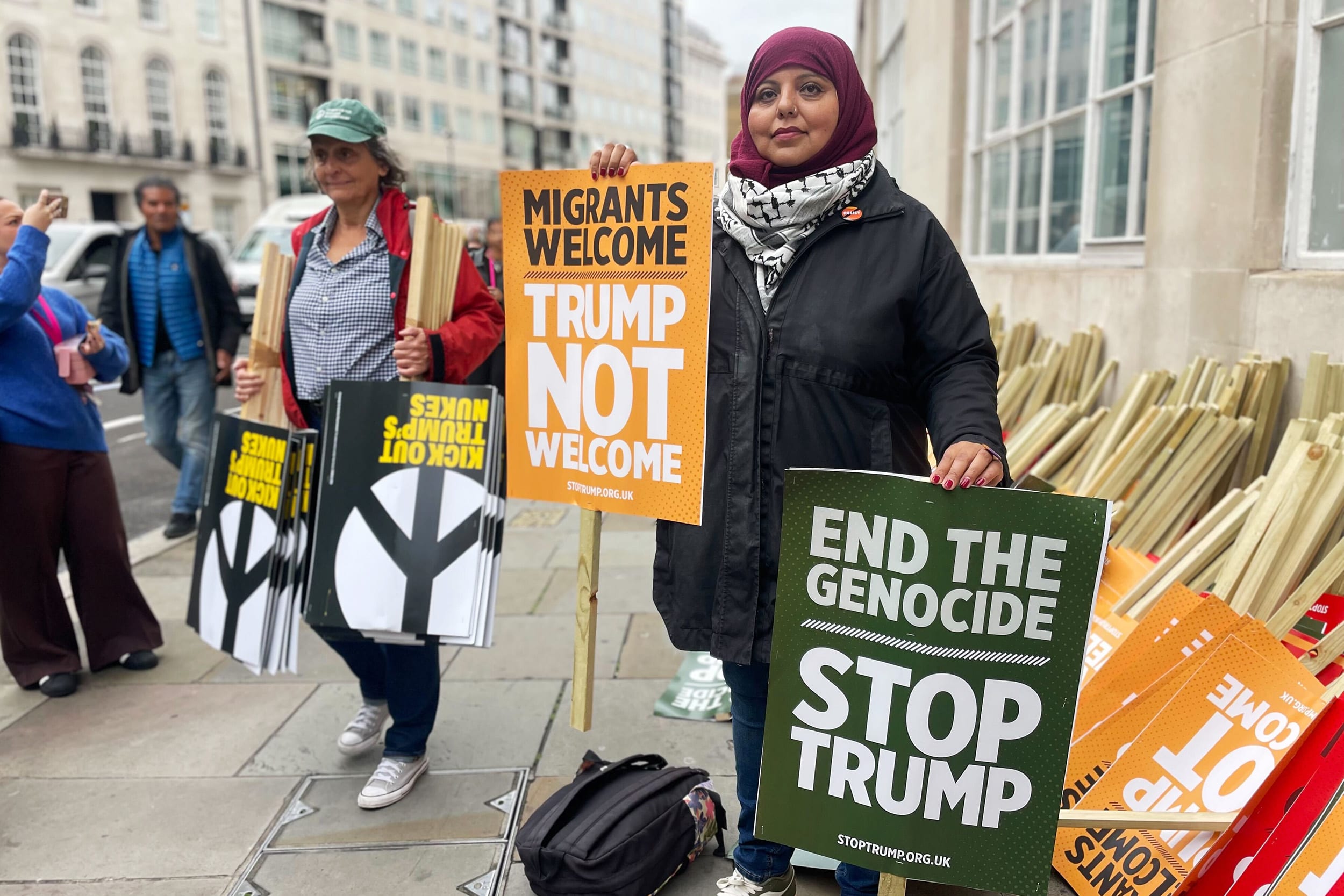 Holding a sign emblazoned with the words “I am a proud American. I am not proud of Trump,” Nancy Janin said she felt it was important to be at today’s march in London demonstrating against Trump's state visit to the U.K.