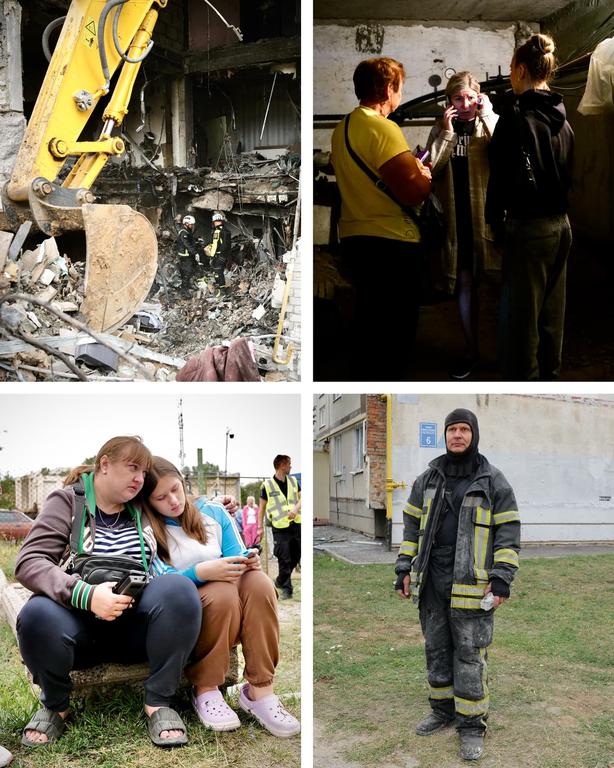 The scene today outside an apartment building on the outskirts of Kharkiv that was hit by a Russian aerial strike overnight. Ted Turner / NBC News