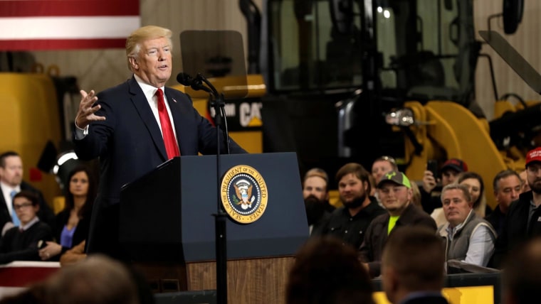 Trump then regaled the crowd for just under an hour with his thoughts on everything from military spending to community colleges ("I don't know what that means, a 'community college") to TV ratings for the reboot of "Roseanne." He also spoke about tax reform, the Keystone XL pipeline, the recent renegotiation of the U.S.-South Korea trade deal — a "Hillary (Clinton) special."