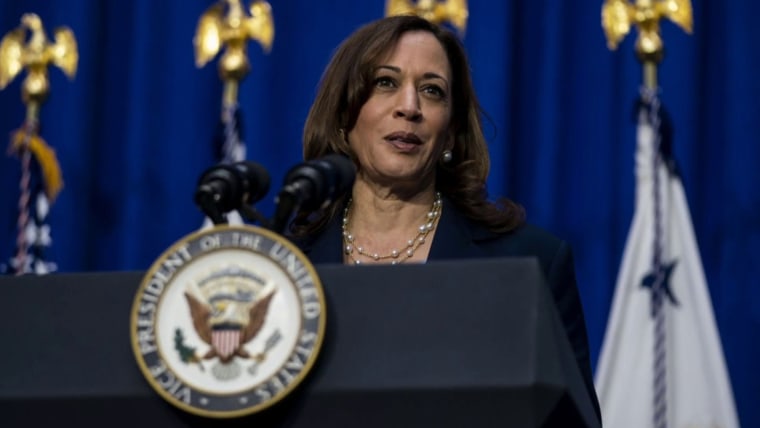 A source familiar with the incident told NBC News that Harris was headed to work at the White House in her motorcade when the vehicle she was riding in clipped a high curb with its back wheel and was disabled.