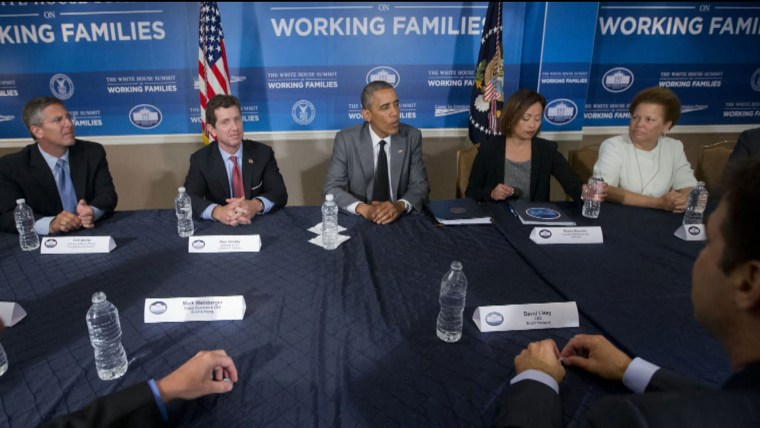 “Work gives us a sense of place and dignity as well as income and it is critically important,” Obama said. “But family is also the bedrock of our lives and we don't want a society in which folks are having to make a choice between those two things.”