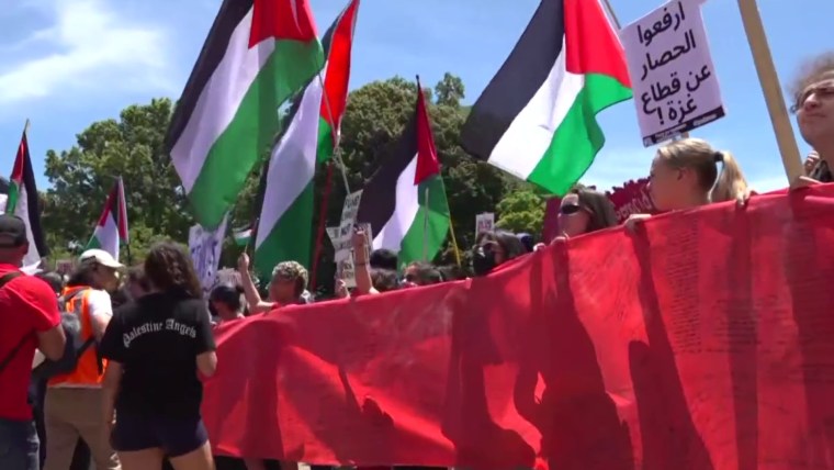 Similarly, Qais Musmar, who traveled from Springfield, Virginia, for the protest, said he voted for Biden in 2020, adding, “I kind of regret it right now.” He said he would probably vote for an independent candidate in November, though “there’s a lot that [Biden] could do” to change his mind.