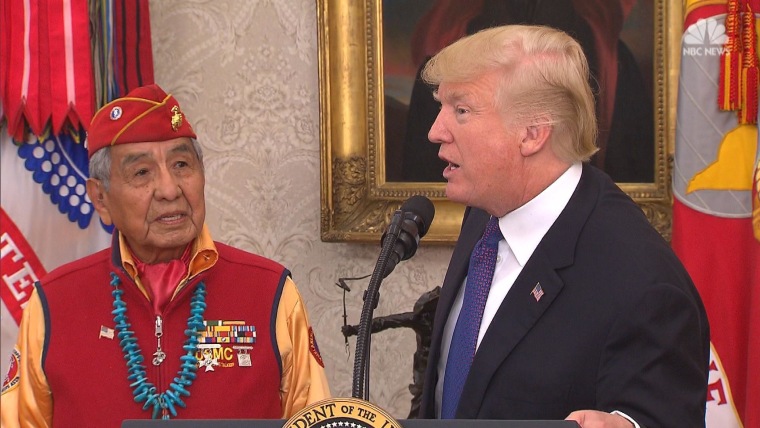After making the crack, Trump turned to one of the Navajo code talkers, who served in World War II, and said: "But you know what? I like you. Because you are special. You are special people, you are really incredible people."