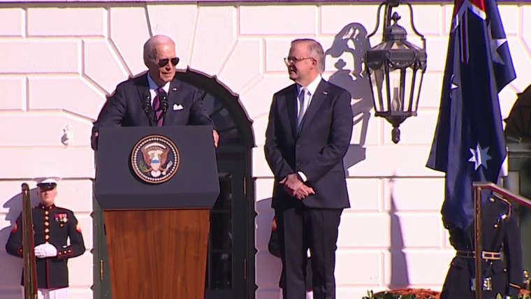 Albanese also mentioned the wars in brief remarks following Biden's, noting Australian assistance to Ukraine and Australians' condemnations of "the atrocities, terror and pitiless brutality of Hamas."