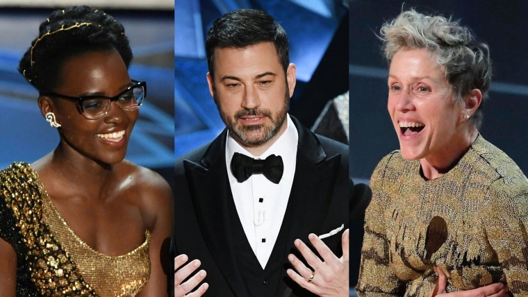 The emcee, Jimmy Kimmel, opened the show with pointed one-liners about the recent upheaval in Hollywood, from the fall of producer Harvey Weinstein to debates over pay inequities.