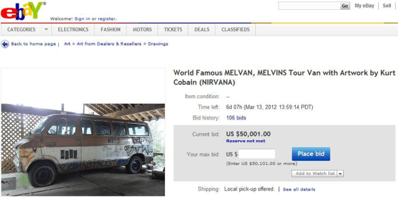 Before forming Nirvana, Kurt Cobain was a major fan of the Melvins, a then up-and-coming local band from Montesano, Wa., who equally enjoyed punk rock and heavy metal -- and helped create "grunge" in the process. And to show his appreciation of the band, Cobain drew a "Kiss mural" (similar to the cover of Kiss' self-titled debut) on the side of the Melvins' van -- and chauffeured the band to their shows. And now, the "Melvan" (which is a beat-up 1972 Dodge Sportsman Royal Van) is up for auction on eBay.