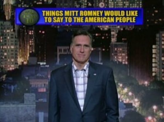 Mitt Romney had a few things he wanted to share with potential voters, and like all good politicians, he took to the late night circuit to do so. Monday night on "Late Show with David Letterman," the Republican presidential candidate deliverered his list of the "Top 10 Things Mitt Romney Would Like to Say to the American People."