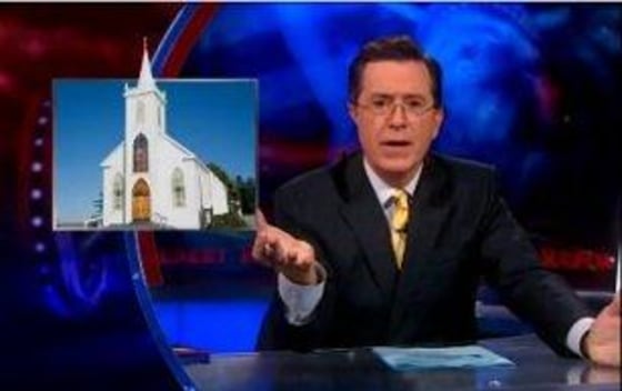 And speaking of reset, the first of Colbert’s two guests was looking to go back to the days where church leaders could get directly involved in political endorsements, before the IRS stepped in and it was declared illegal for tax-exempt organizations. Religious figures involved plan to make political speeches this weekend on Pulpit Freedom Sunday, send the tapes to the IRS, and challenge those laws. Because who doesn’t love being both sued and audited?