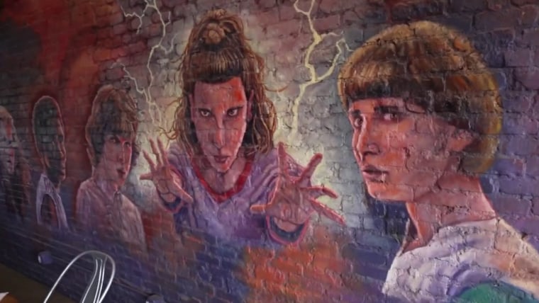 “It was a bootstrap situation,” said Hannah Thompson, who owns a local shop dedicated to 1980s memorabilia and runs daily “Stranger Tours” with her husband, Cameron. “If you’re looking around, you’re seeing empty shops, many of those were empty for almost a decade.”