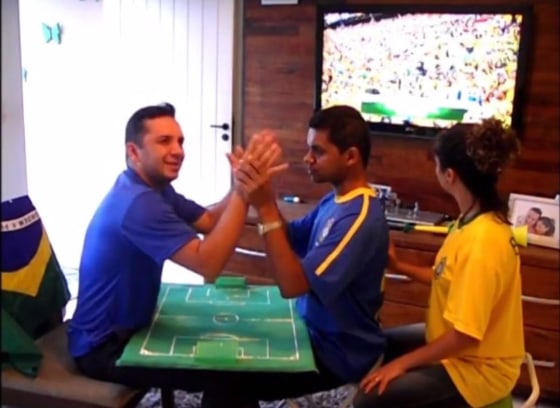 Brazilian sign language instructor Hélio Fonseca de Araújo simply wanted to watch Brazil's opening World Cup opening match with his friend, Carlos. And thanks to a bit of ingenuity and a homemade field, the unimaginable has become reality.