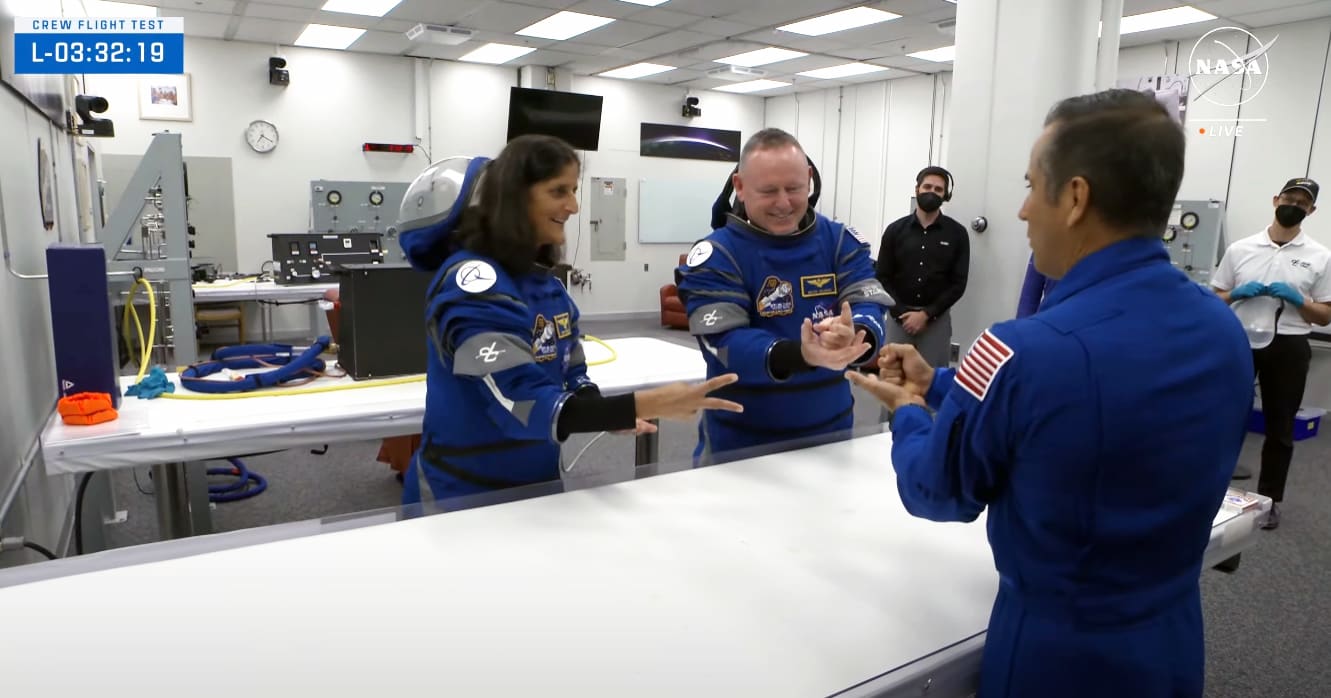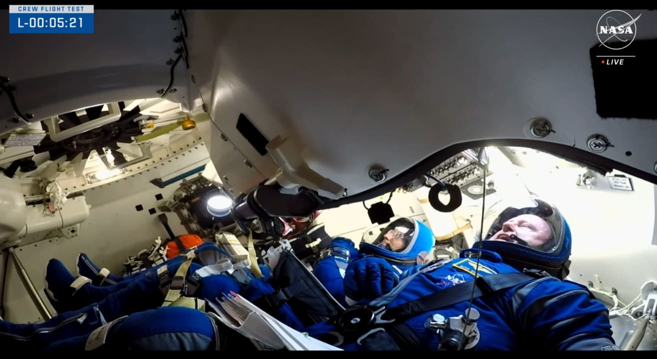 Astronauts Butch Williams and Sunita Williams are getting strapped into their seats inside the Starliner capsule. Another round of spacesuit leak checks will be performed, and teams will make sure the crew members can reach all of their controls and communicate with mission managers on the ground.