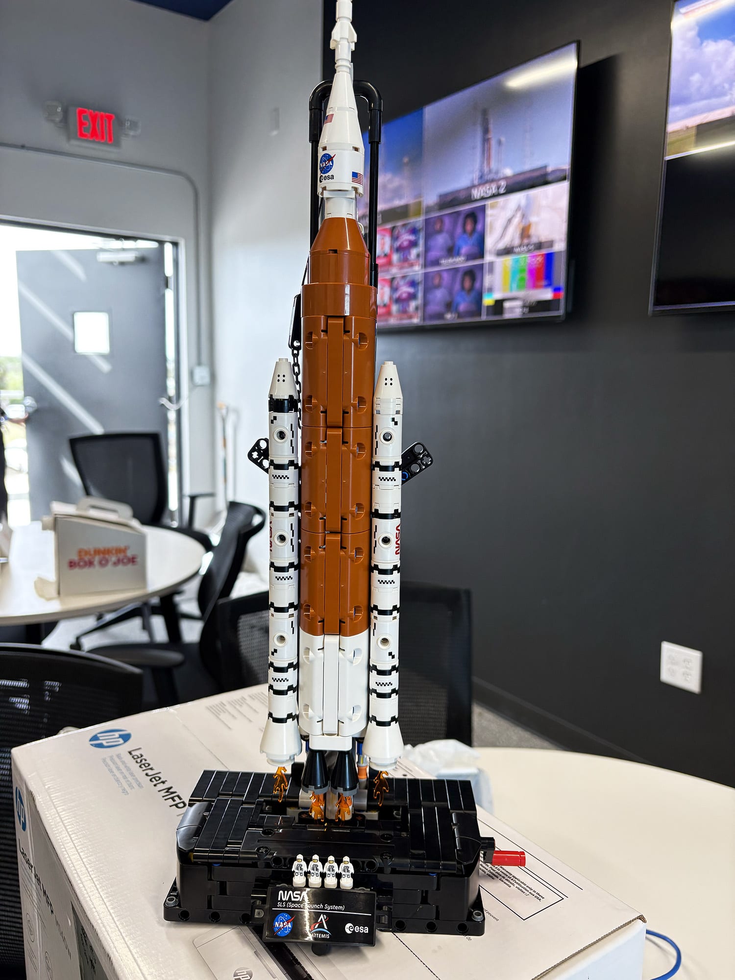 NBC News tech manager Barry Sprauge built this lego model of NASA's Space Launch System rocket and Orion capsule. The Artemis II mission will be the first time the system launches humans into space.