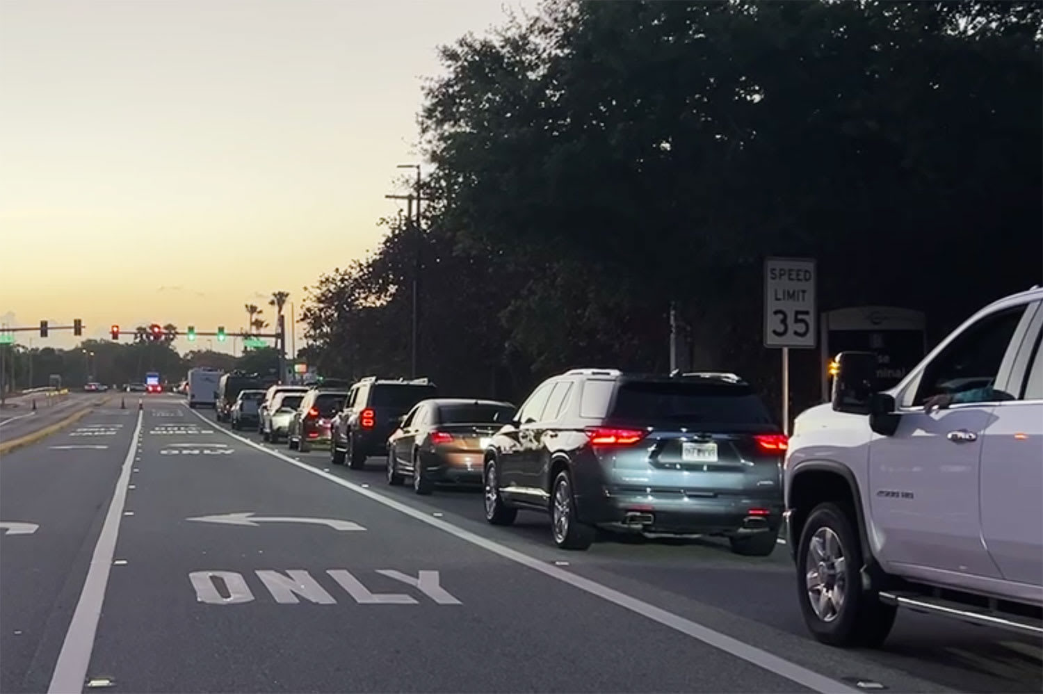 Traffic in Jetty Park, Cape Canaveral, this morning. Charlie Gile / NBC News