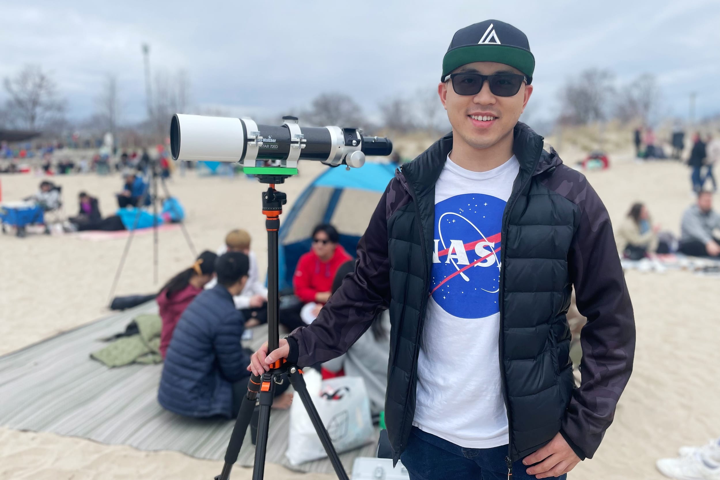Newton Chu and his family traveled to Indianapolis to view the spectacle from Hawaii — their third eclipse sighting since 1991.