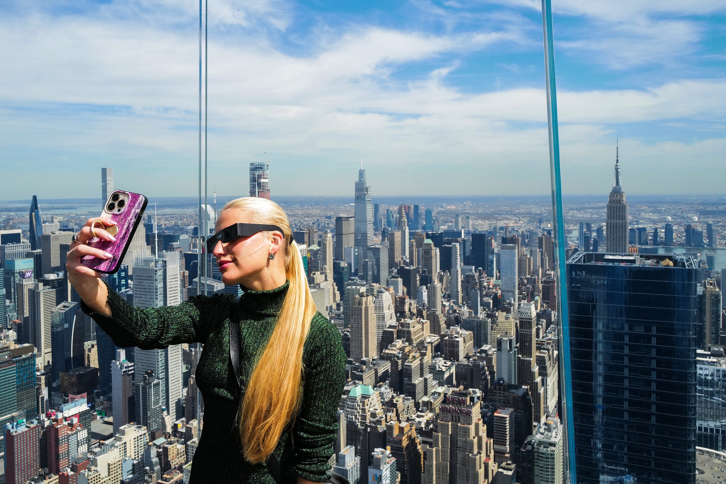 People gathered at the Edge at Hudson Yards observation deck in New York City.