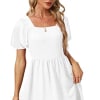 This boho style dress has puff sleeves, a square neckline and an A-line skirt. It ties in the back and is made from polyester with enough stretch to conform to your body. The dress comes in eight colors and goes up to a size XXL.