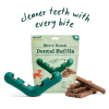 If your dog tends to chew for extended periods, consider Woof’s Bite n’ Brush toy. The V-shaped device has silicone bristles along the inside to scrub plaque and tartar off their teeth — you simply fill the brush with the brand’s own dental treats (or a treat of your choice). Plus, it extends the time it takes to chew a dental treat. My family’s 1-year-old goldendoodle, Enzo, is a heavy chewer with lots of energy, so this brush cleans and scrubs his teeth while keeping him entertained for much longer than a typical dental treat would. The starter pack comes with the brush and dental treat refills (which you can purchase once or choose to have them automatically shipped to your door every four, six or eight weeks).