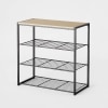 This wooden and metal shoe rack measures 25 x 24 x 11.8 inches and its design makes it easy to grab the pair you want and put away the ones you don’t without opening a drawer. It has a weight capacity of 100 pounds, according to the brand.