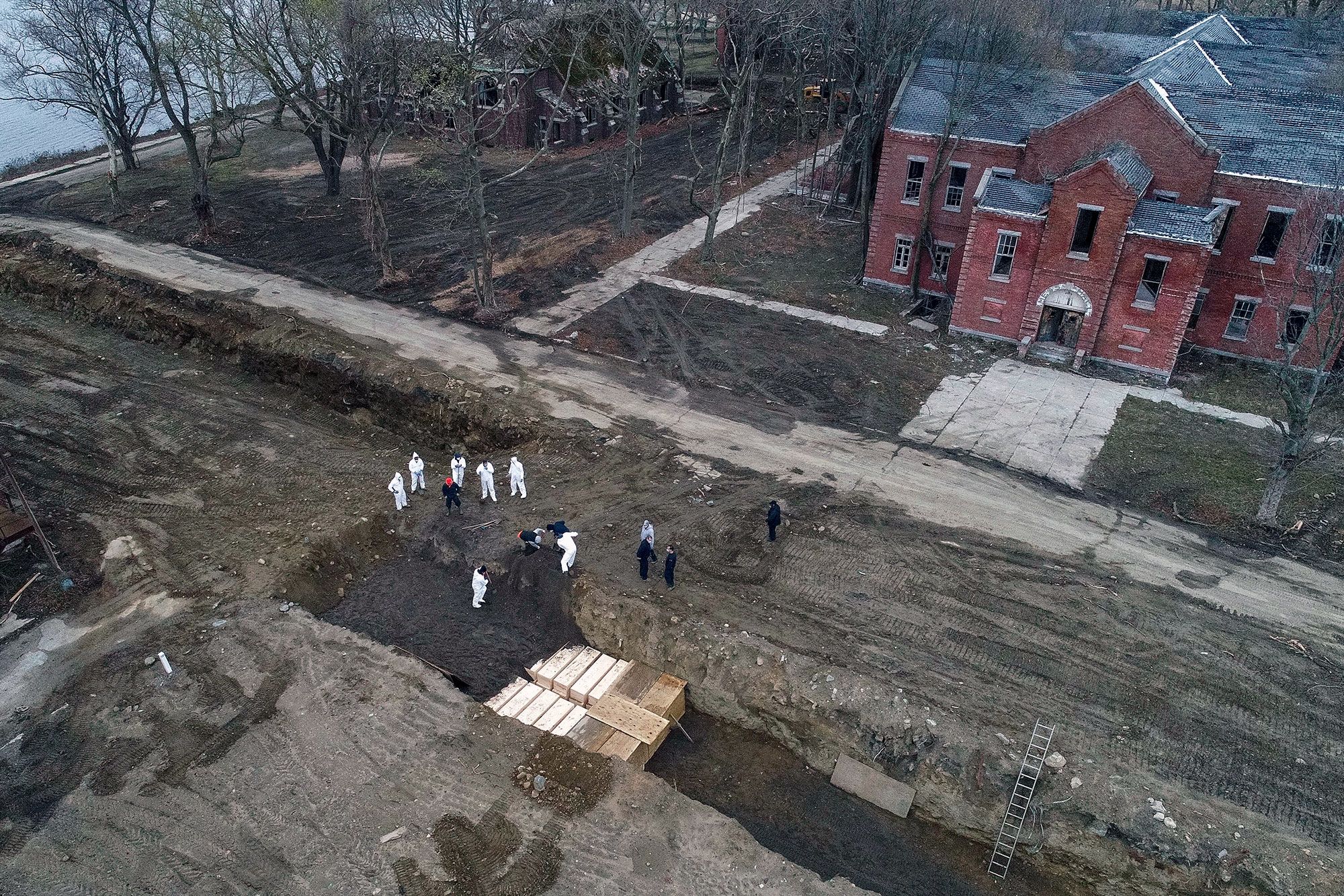 As the death toll mounted in New York, the city's public cemetery started receiving about the same amount of bodies per day that it used to bury there each week. Normally, about 25 bodies a week are interred on the island, mostly for people whose families can't afford a funeral, or who go unclaimed by relatives. Burial operations increased from one day a week to five days a week, with around 24 burials a day.
