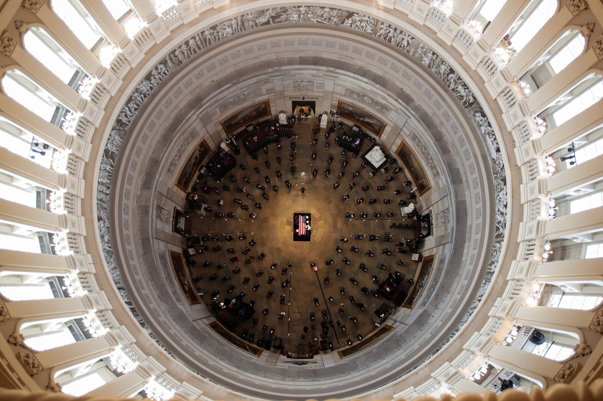Rep. John Lewis, D-Ga., lies in state in the Capitol Rotunda on July 27. (Jonathan Ernst / Reuters)