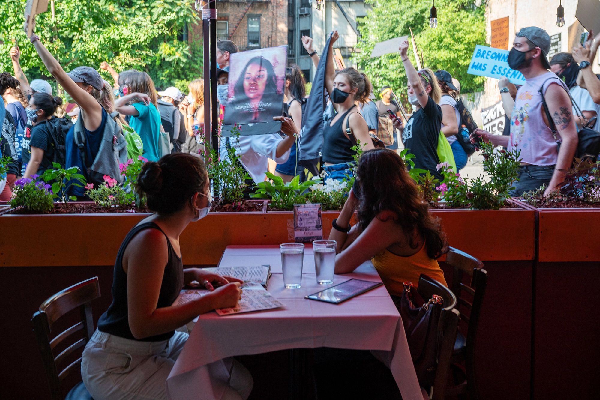 Protesters march on Aug. 9 in New York City to demand the arrest of the officers responsible for Breonna Taylor's death. (David Dee Delgado / Getty Images)