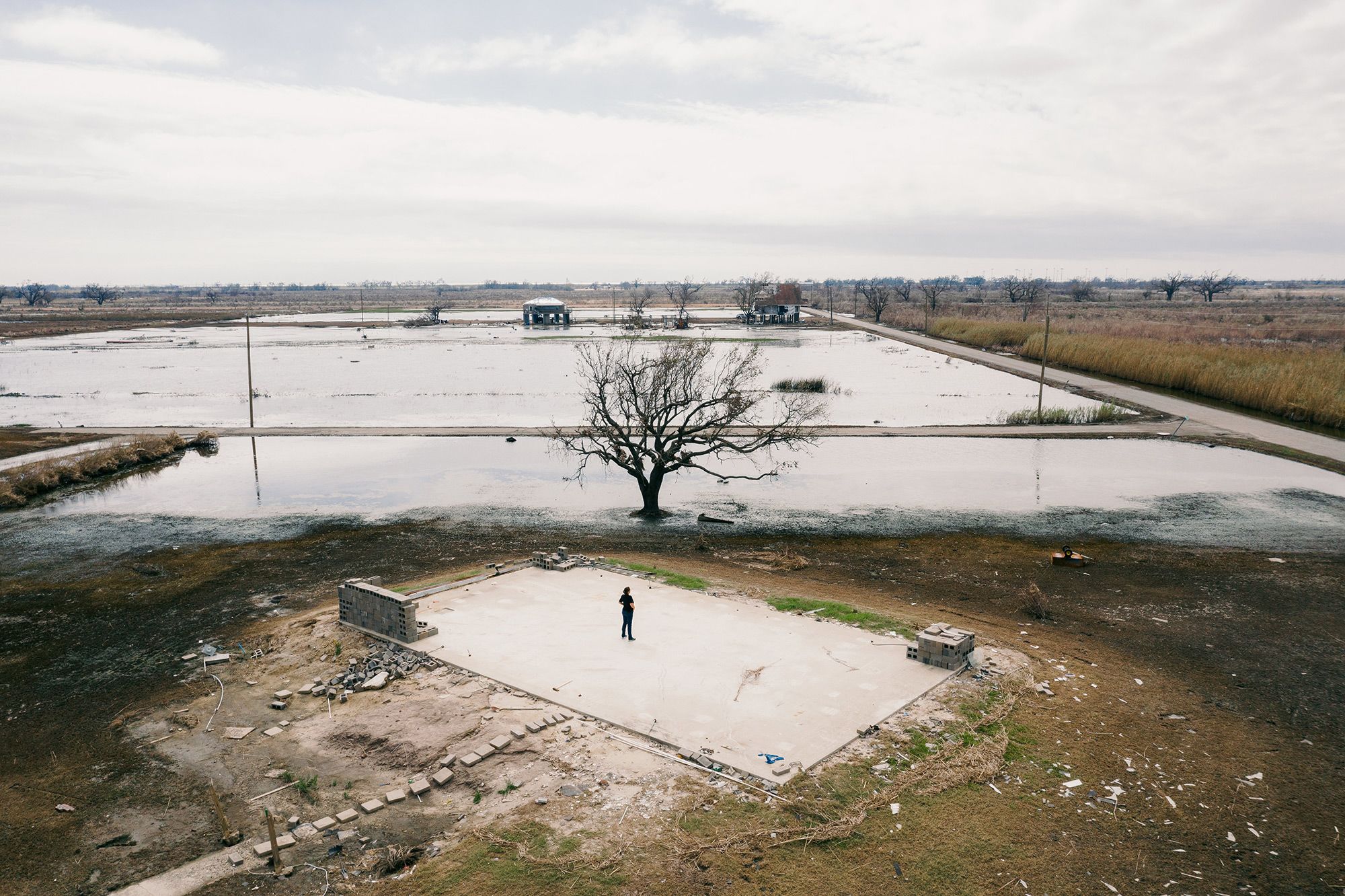 Clair Hebert Marceaux at the site where her home once was in Cameron, La., on Oct. 27. (Bryan Tarnowski/ for NBC News)