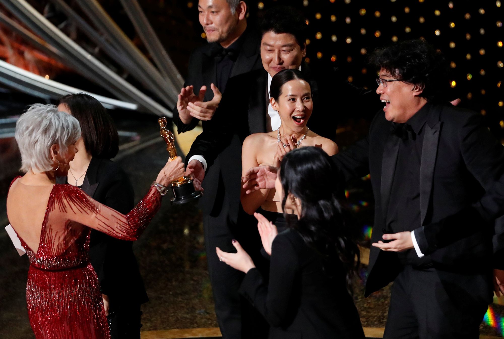 The South Korean director Bong Joon Ho and his masterful social thriller “Parasite” won best original screenplay, best international film, best director and best picture, the first non-English language film to win best picture in the Oscars' 92-year history.