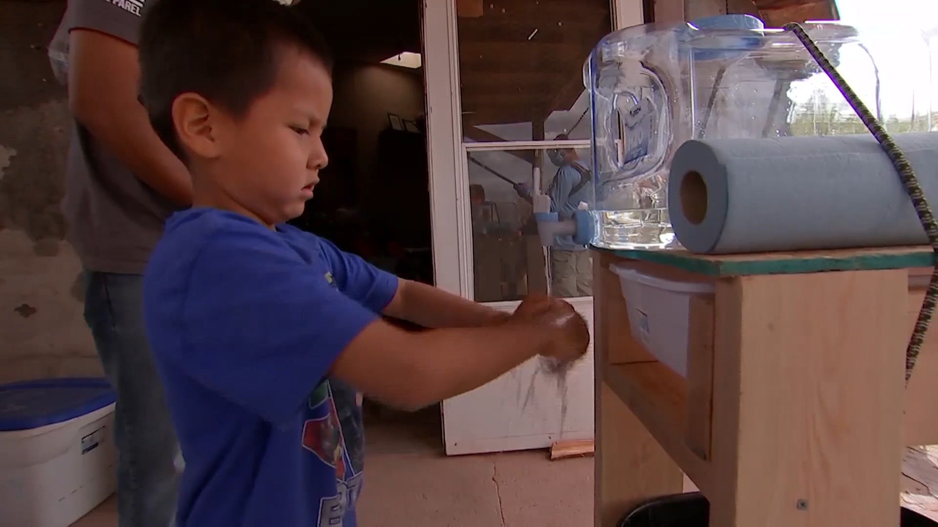A child bathes in a sink in Navajo Nation. According to the Navajo Nation Department of Water Resources, an estimated 30 percent of Navajo Nation's population does not have access to running water. (DigDeep)
