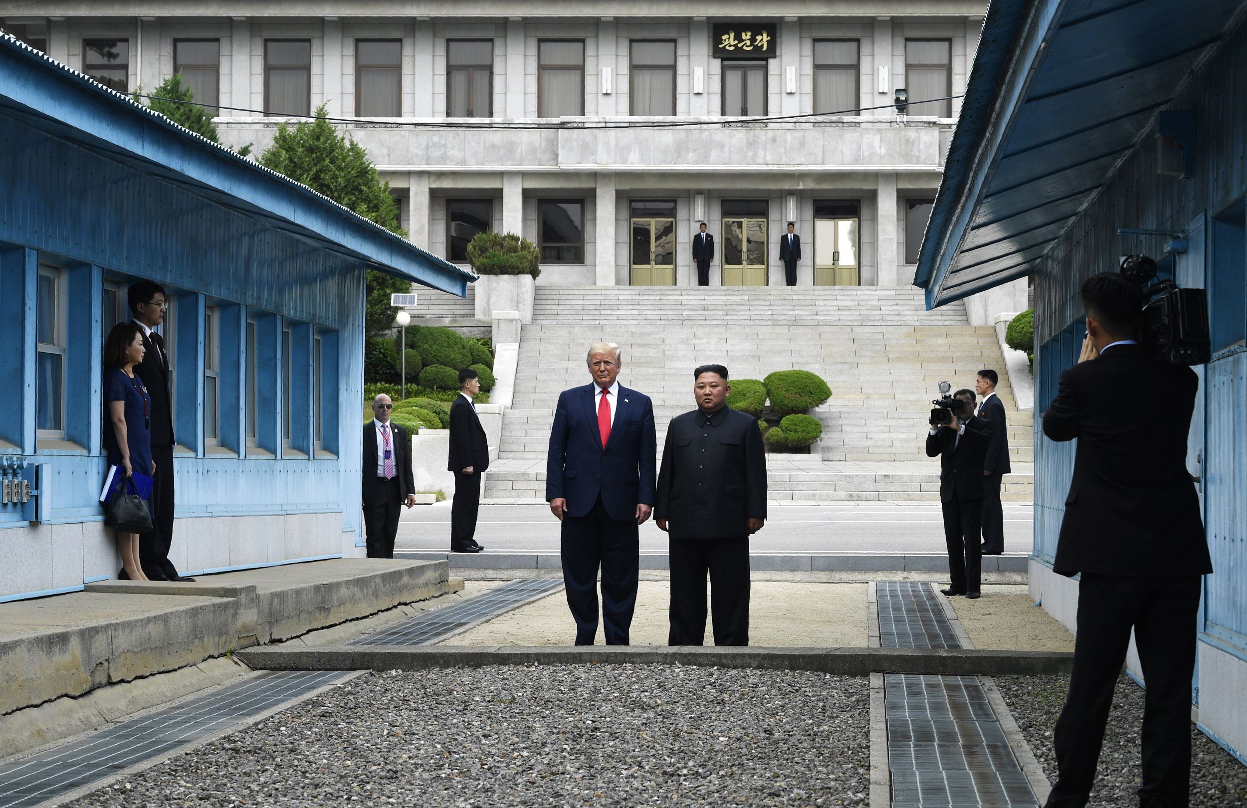Trump became the first sitting American president to step on North Korean soil on June 30, 2019, as he met Kim in the heavily fortified Demilitarized Zone. (Susan Walsh / AP file)