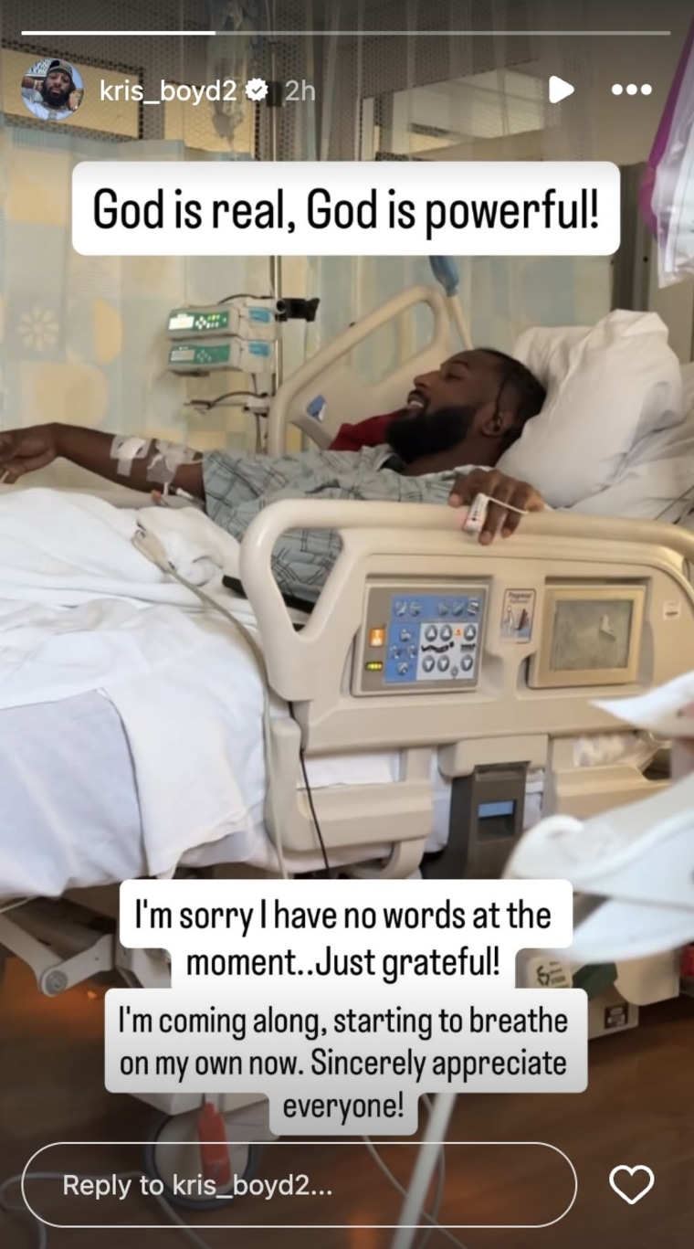 “God is real, God is powerful!” Boyd, 29, said in a post on his Instagram story Wednesday afternoon.