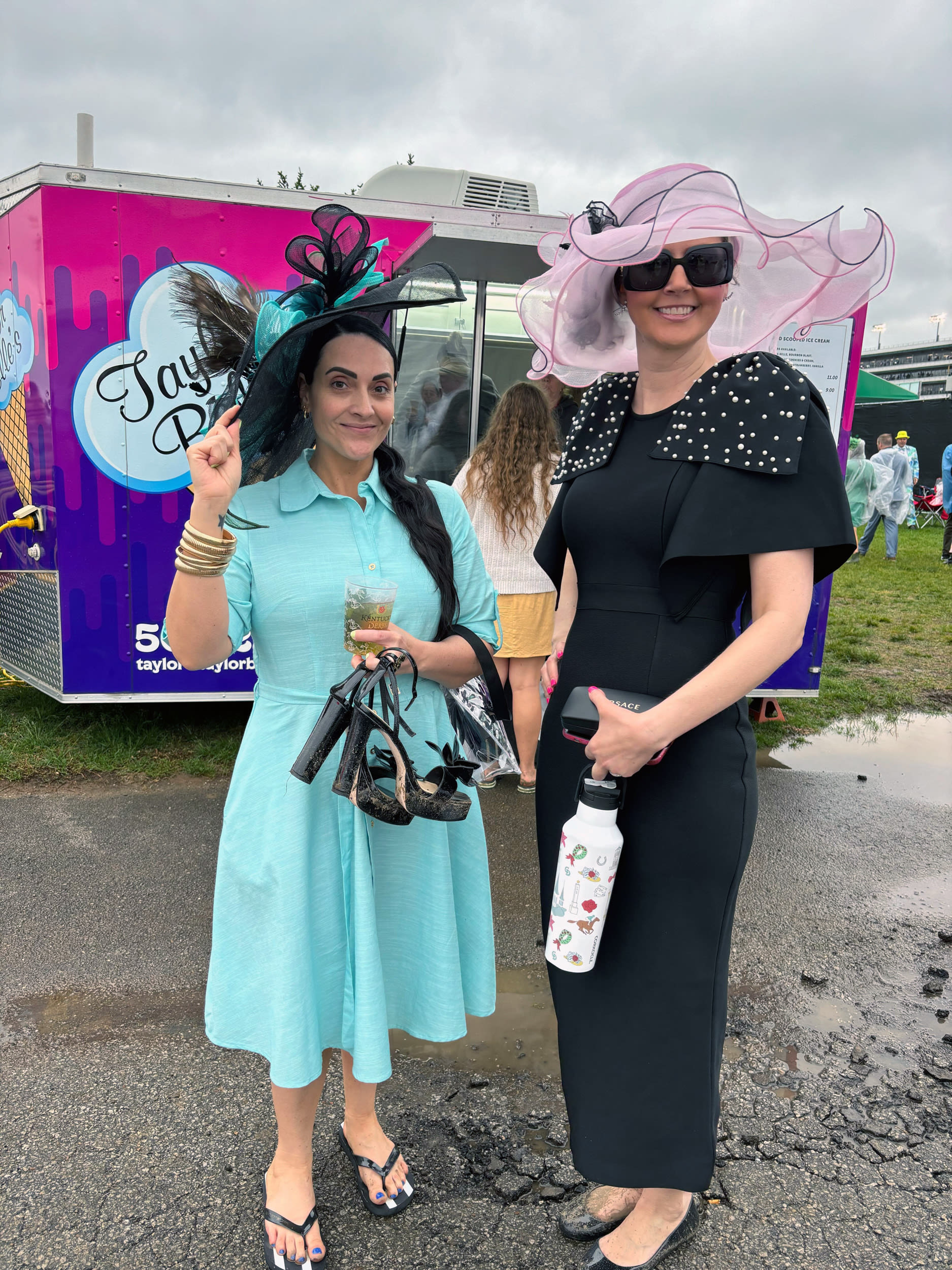 The Kentucky Derby hats arrive as storm clouds hang overhead at Churchill Downs