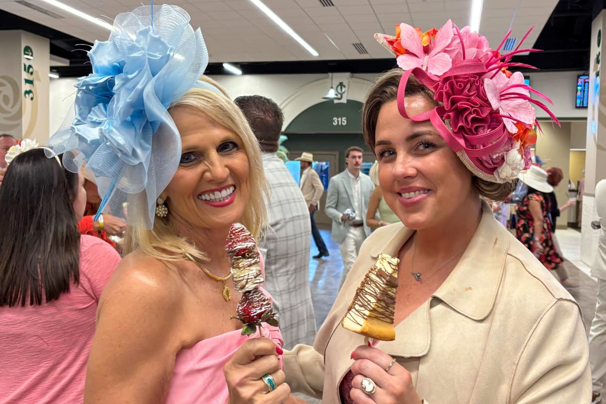 “I love that when you walk in, you are greeted with drinks. I mean, it just makes it so much more fun,” Kimberly Booth, 54 and at her first Derby, said.