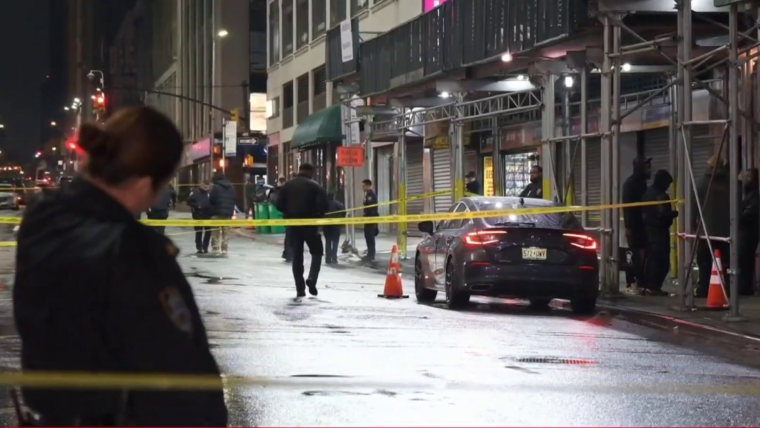 Video Sunday morning showed police tape and vehicles blocking off the road on Seventh Avenue and West 38th Street. By the afternoon, the tape had been removed and one NYPD vehicle was on the street.