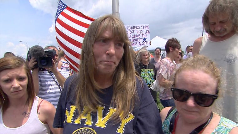 Paula Proxmire, the mother of Navy Petty Officer Randall Smith, left an American flag and a baseball mitt — representing two of her son's two passions — at a memorial growing near one of the sites of Thursday's shootings that left five servicemen and the gunman dead.