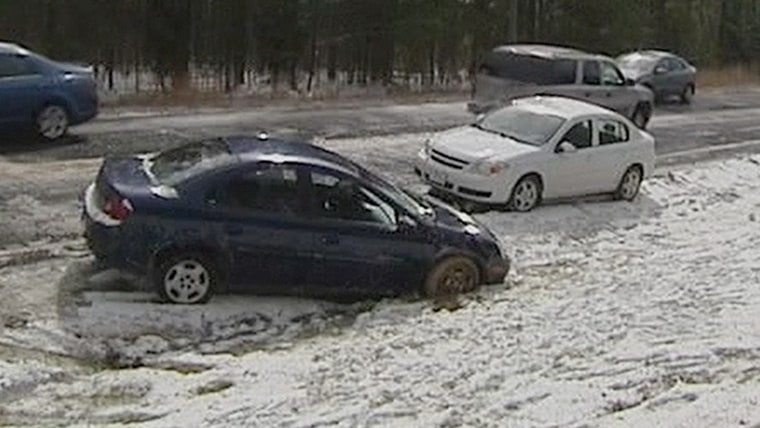 Drivers slid off the road on Highway 150 in Guilford County in central North Carolina, snarling traffic in both directions.