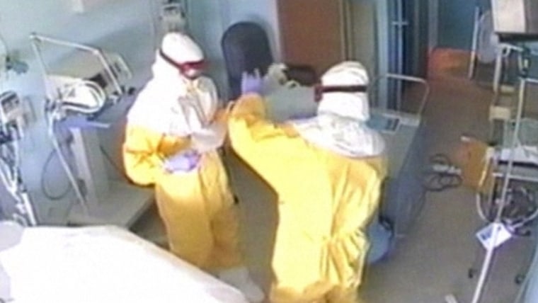 A Spanish nurse's aide who was infected with Ebola may have contracted the virus when her gloves touched her face as she took off her protective suit, a doctor treating her said on Wednesday. "During the course of the morning we looked at actions taken when [the nurse’s aide] put on her protective suit," Dr. German Ramirez said outside Madrid's Carlos III hospital. "She has told us of the possibility that her suit had contact with her face ... it could have been an accident." Ramirez added: "It looks like it was the gloves."