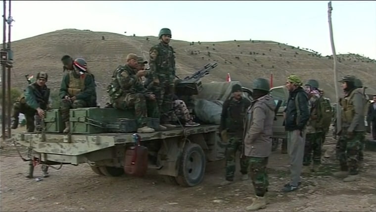 Pentagon officials told NBC News early Thursday that 20 U.S. strikes had been launched overnight — hitting ISIS fighting positions, staging areas, a bunker and other targets. They said that U.S. special operations forces were also embedded as advisers, adding that they were "well back from the fighting.”