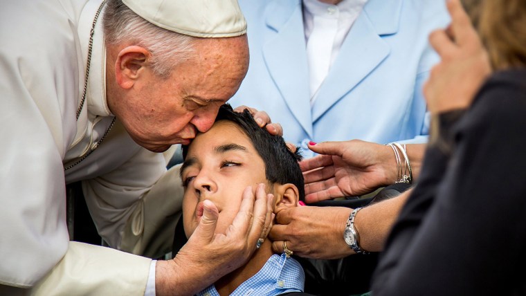 A nun in the crowd spoke to the pope in Spanish, telling him, "He is your child. Please bless him." The pontiff, who is known for embracing the ill, especially children, did just that.