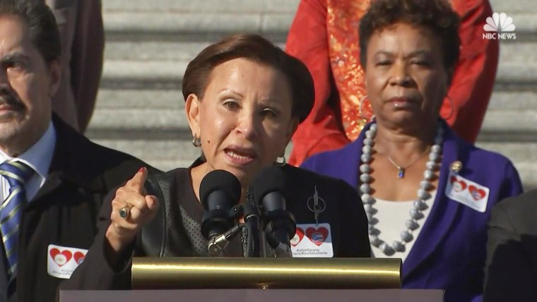 Local residents, young and old, had used hand saws to cut up trees and debris because they had not gotten federal help, Velázquez told NBC News after the Capitol steps rally.