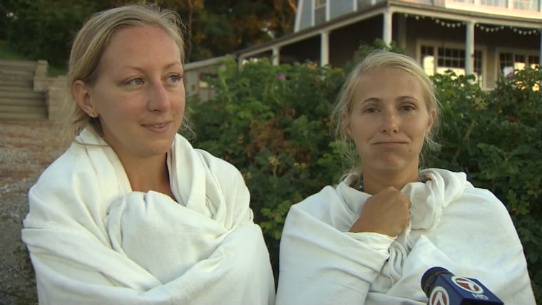 A pair of kayakers say the shark bit through the bottom of their boat and flipped it over.