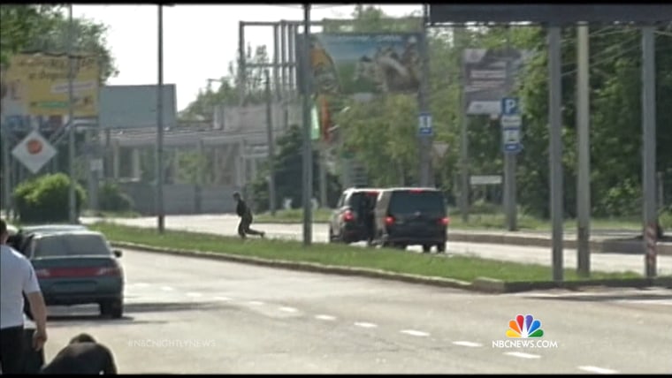 The separatists “retreated” and were hiding in nearby homes, “using civilians as human shields,” Alexei Dmitrashkovsky, spokesman for Ukraine’s anti-terrorism operation, told NBC News on Tuesday.