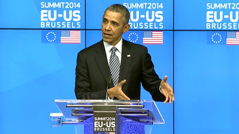 "If anyone in Russian leadership thought the world would not care about their actions in Ukraine, or that they could drive a wedge between the European Union and the United States, they clearly miscalculated,” Obama said after a meeting between with European Union leaders in Brussels.