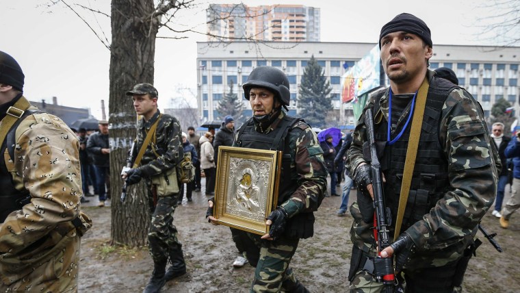 Ukrainian leaders blame Russia, which annexed Ukraine's Crimea region after Moscow-backed President Viktor Yanukovich fled after months of pro-Western protests, for inspiring and organizing a rash of rebellions in Slovyansk and other Russian-speaking towns in eastern Ukraine.