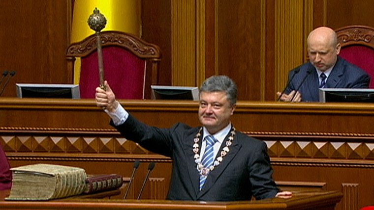Poroshenko said Sunday, one day after being sworn in as leader, that there must be a cease-fire this week. But his calls for peace have been rejected in the past by rebel leaders who see them as one-sided demands for the insurgents to lay down their arms.