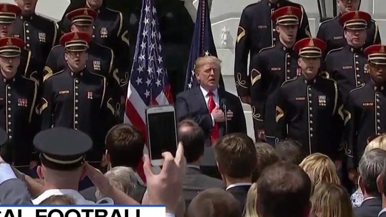 President Donald Trump arrives for a "Celebration of America" event at the White House on June 5, 2018, in Washington, in lieu of a Super Bowl celebration for the NFL's Philadelphia Eagles that he canceled.Susan Walsh / AP
