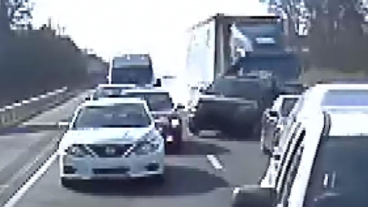 A surveillance camera captured a tractor-trailer slamming into the back of one car and setting off a chain reaction pile-up involving several other vehicles. WCNC's Ashley Daley reports.Feb. 10, 2017