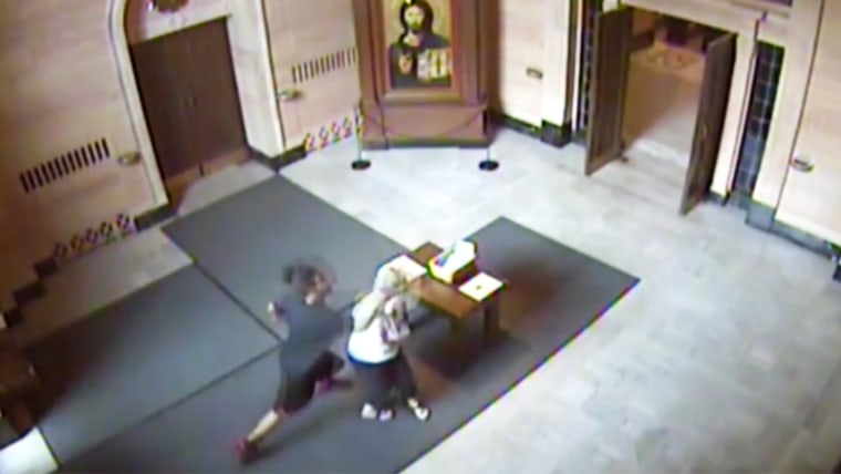 Security video shows two men violently rob 72-year-old woman inside church. WOWT's Joe Chiodo reports.Aug. 19, 2015