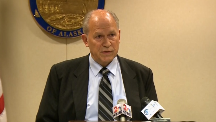 Gov. Bill Walker and an official from Alaska Division of Homeland Security and Emergency Management respond to a landslide in Sitka, Alaska, that's left four people missing.Aug. 19, 2015
